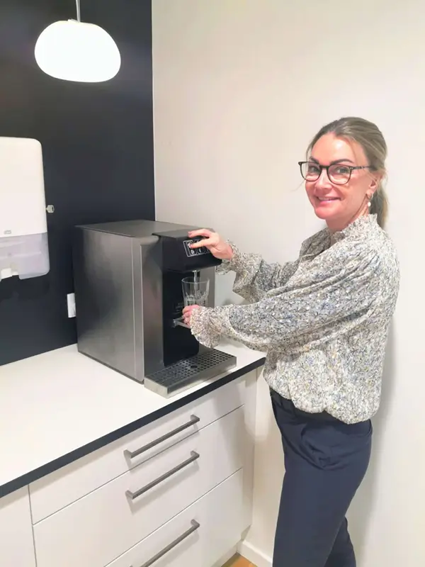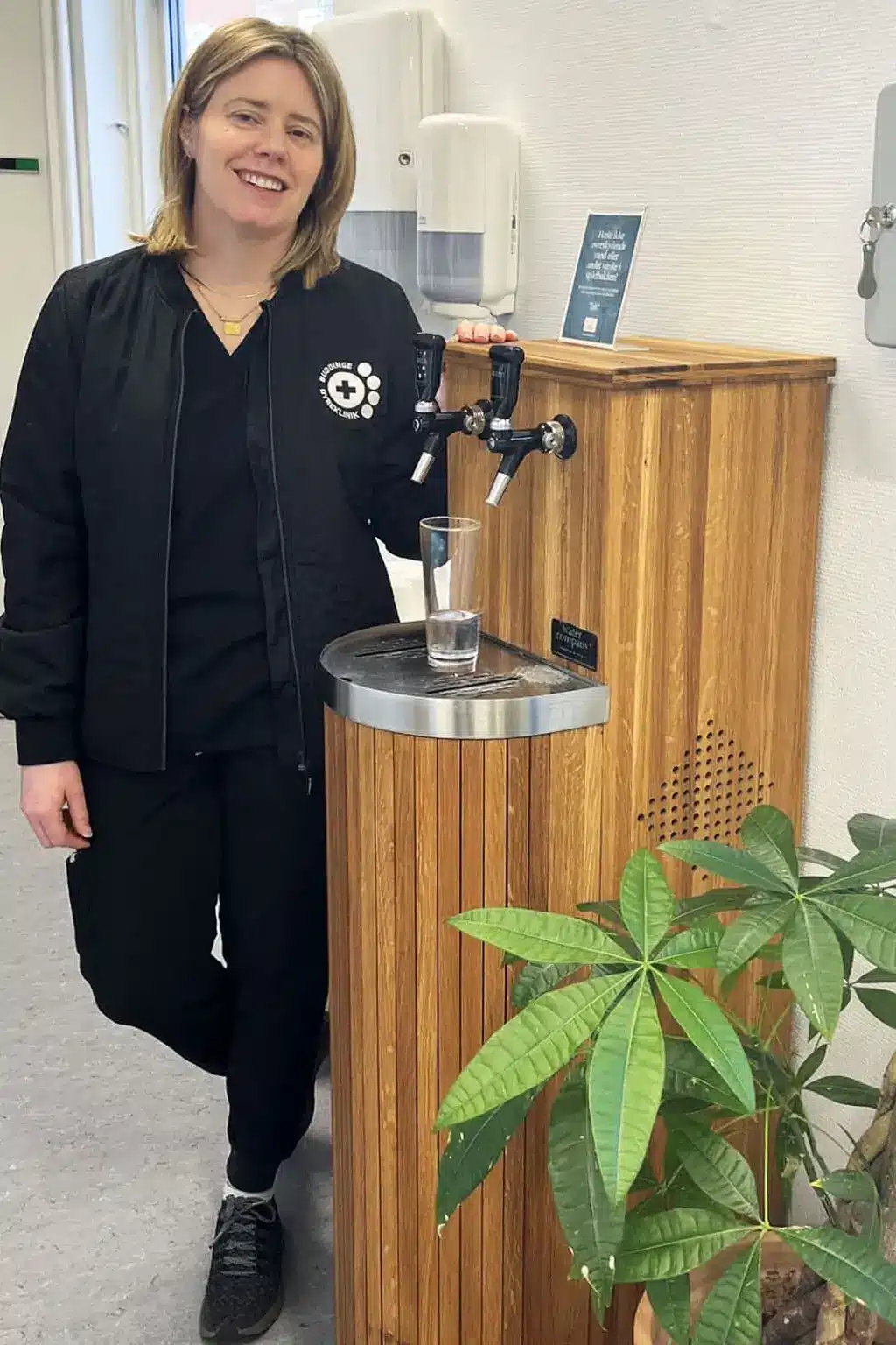 Katie er stolt af at have indført sundere vaner på klinikken. Flere medarbejdere havde efterspurgt vand med brus – og det leverer vandautomaten nu hver dag.
